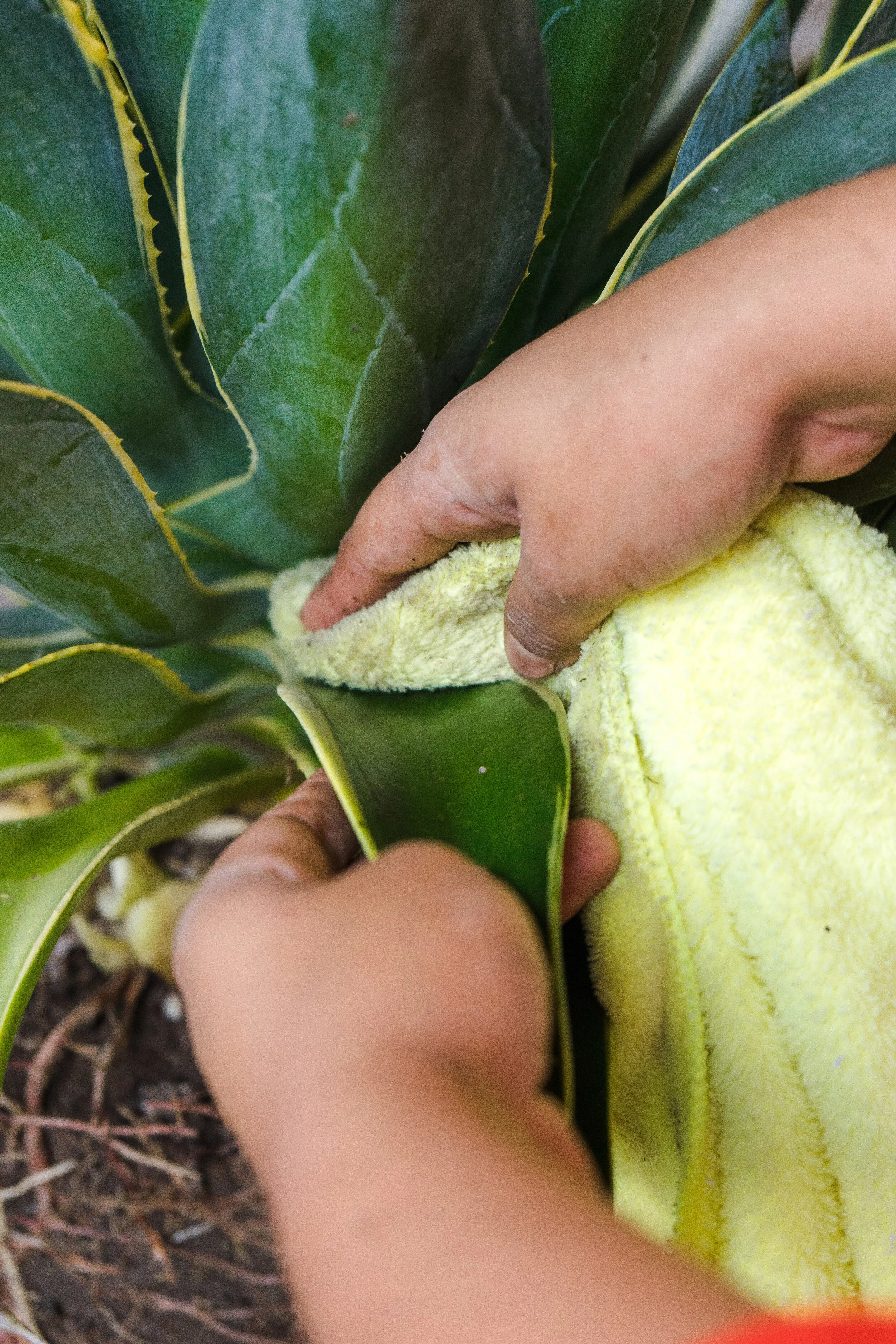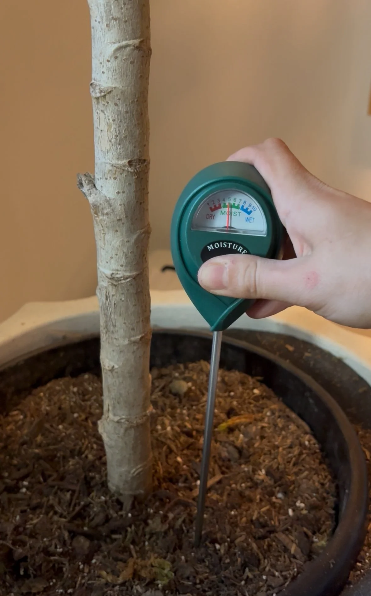 We use a moisture meter to check the soil’s moisture level, and often double check with our hands. Before watering, we add fertilizer or bio insecticide to the watering can based on the individual plant’s needs then we build a profile for each plant so we can track when each plant receives extra treatments.