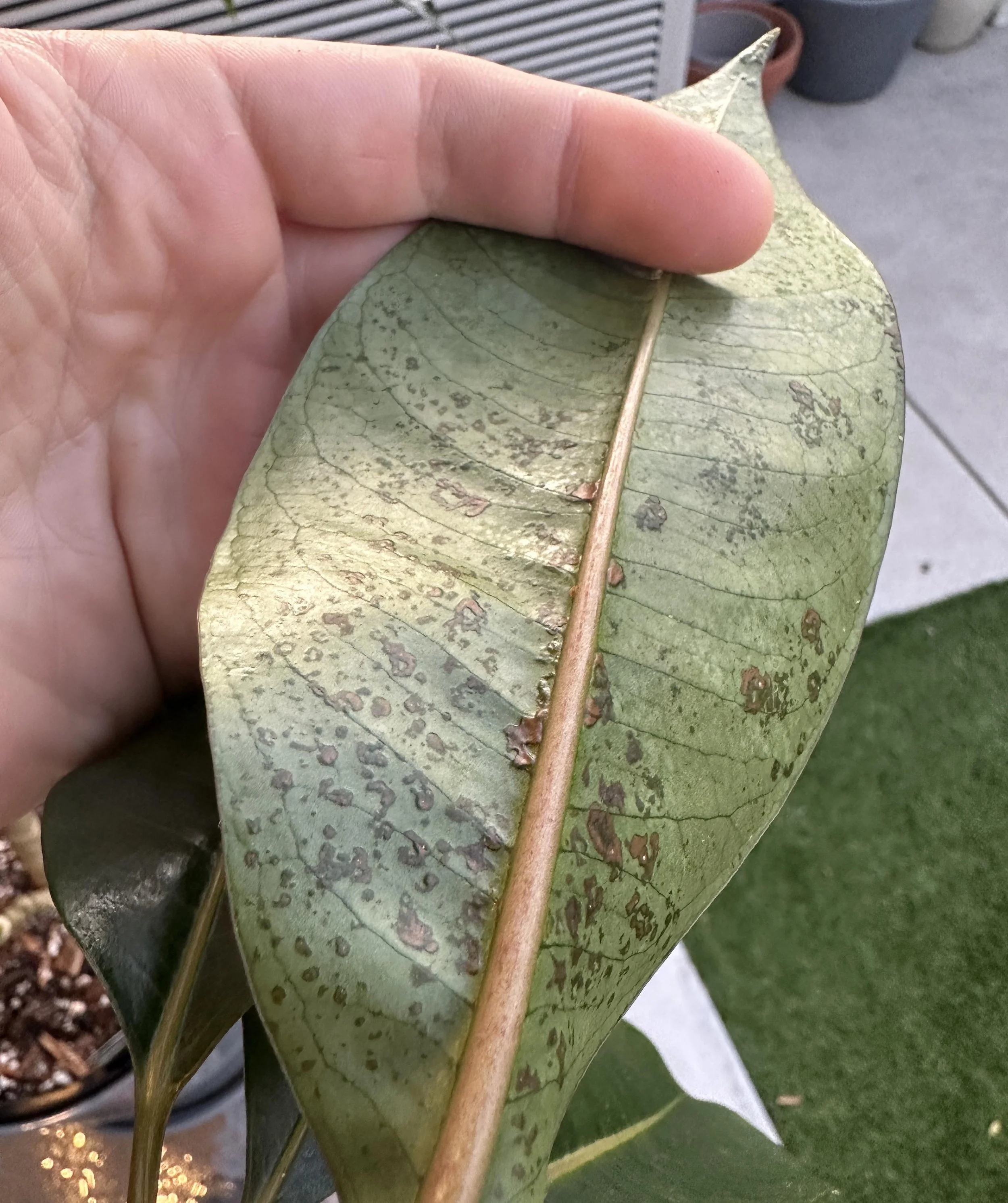Damaged leaves from scale scraping and sucking sap out